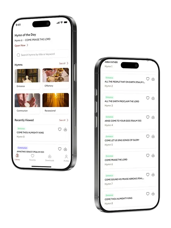 Access Catholic hymns anytime. Read lyrics, listen to audio, and download for offline use.
